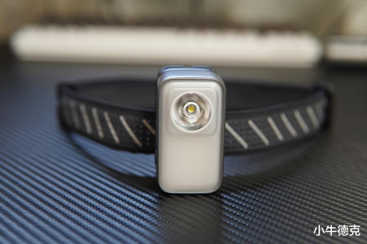从正面能清晰看到配备的两种灯珠:全透明且能看到光杯的是聚光灯,它的最高亮度居然高达600流明,最远照射距离也达到了110米。真的不敢想象,这么小的一盏灯,竟然能达到这样的参数。