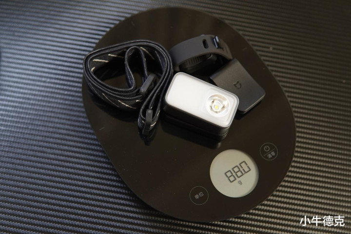这户外多功能灯到底有多小、多轻便?我把这一堆配件加主灯全部称重,总重量也只有88克。不管是戴在头上、固定在帽子上,还是夹在自行车上,都绝不会有累赘感,因为它真的:轻到无感!